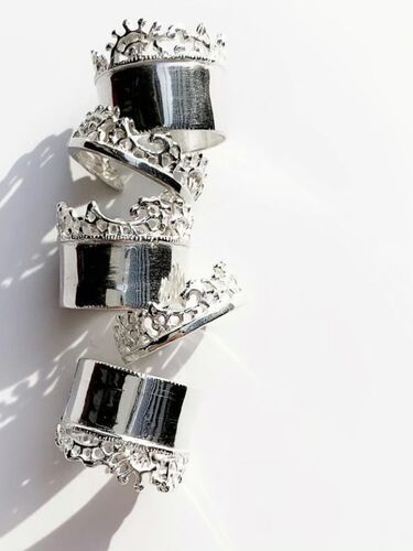 ミニマルなラインと装飾的なレースが融合した"Fusion"ダイナミックな金属の重さや硬さと、かろやかで華麗なレースの美しさ。今まで対極に位置していた2つの要素が合わさり、新たな魅力を放つコレクションです。インパクトのある大ぶりリングは、1つ着ける…