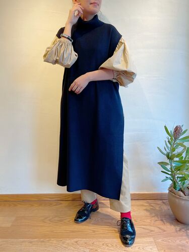 チクチクしない柔らかな風合いが嬉しい、ウールとポリエステル混の軽いタッチの片畦ロングニットベスト。タートル部分を折り返ししやすいように、衿の後ろにスリットを入れ、ディテールにもこだわった一枚。 ブラウスやワンピースと合わせて大人なレイヤード…