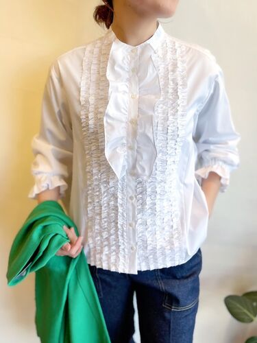 毎シーズン人気のちびフリルブラウスに新作が登場です。大きなフリルを前立て横に重ねた今シーズンは、春らしく、より華やかに仕上げました。 ボトムを選ばない丈感も嬉しいポイントです。ご自宅でお洗濯できる、嬉しいハンドウォッシャブル対応です。Brand …