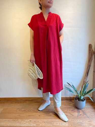 毎年大人気のショルダーワンピースです。麻のスクラブ感が見られるざっくりとした表面感で清涼感あるやや薄手素材。さらっとした肌触りとレーヨンのしなやかさを併せ持ち、バイオ加工による柔らかさをプラスして着心地良く仕上げています。 抜け感のあるスキ…