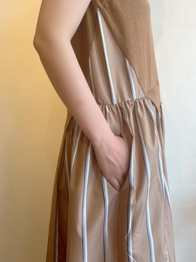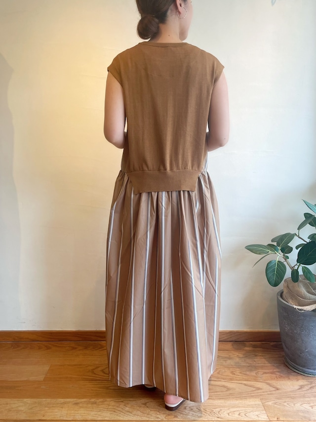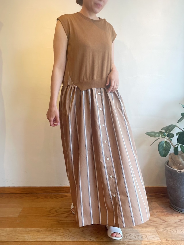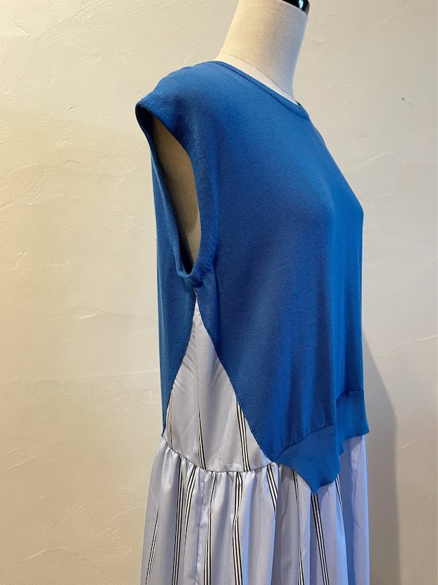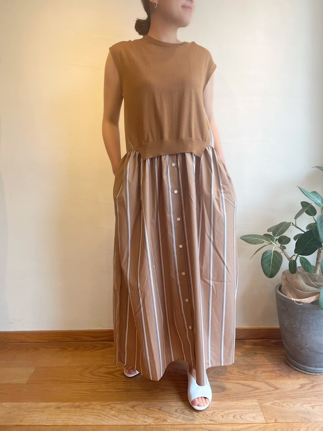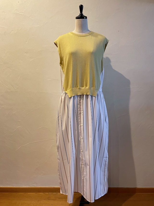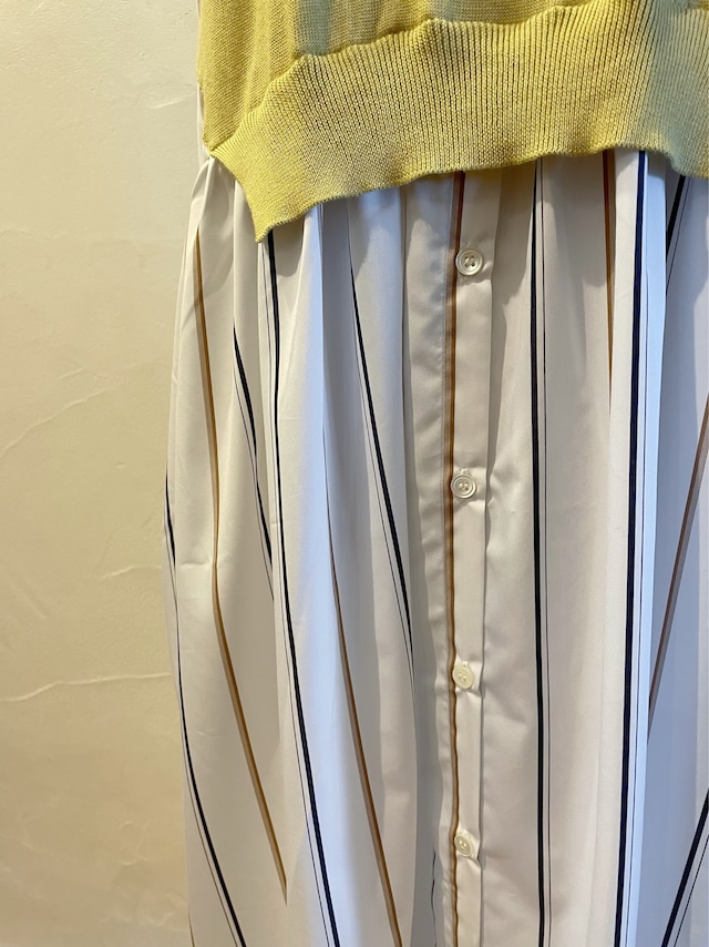 ニット部分にはカシミヤのような柔らかな肌触りが特徴の最高級エジプト綿を厳選して使用。ドッキングのストライプ生地はハリのあるコットンポリエステルでシワになりにくいイージーケア素材を使用したブランドのアイコン的なニットとシャツの異素材レイヤード。
