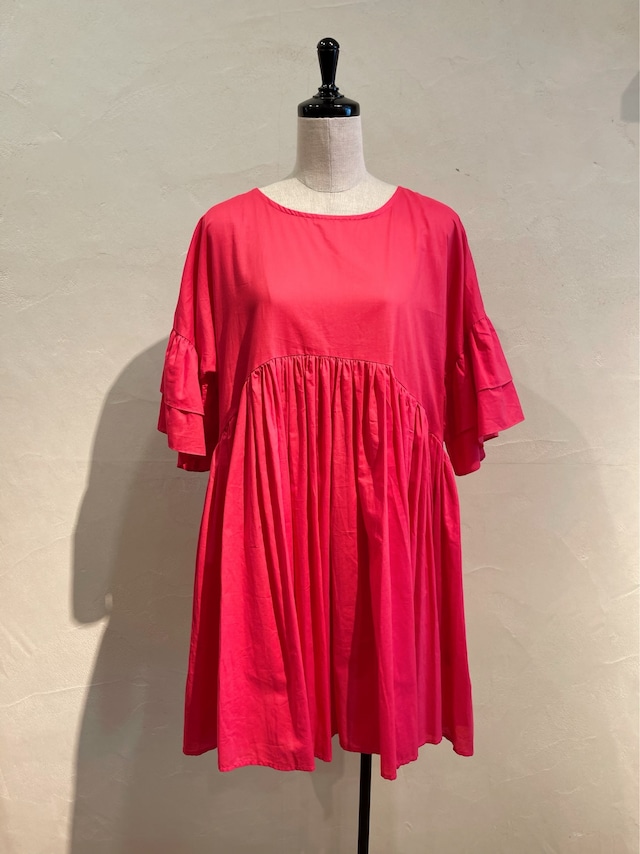 ウエストのギャザーデザインは残しつつ、袖を短くし、段フリルを入れました。