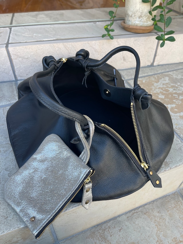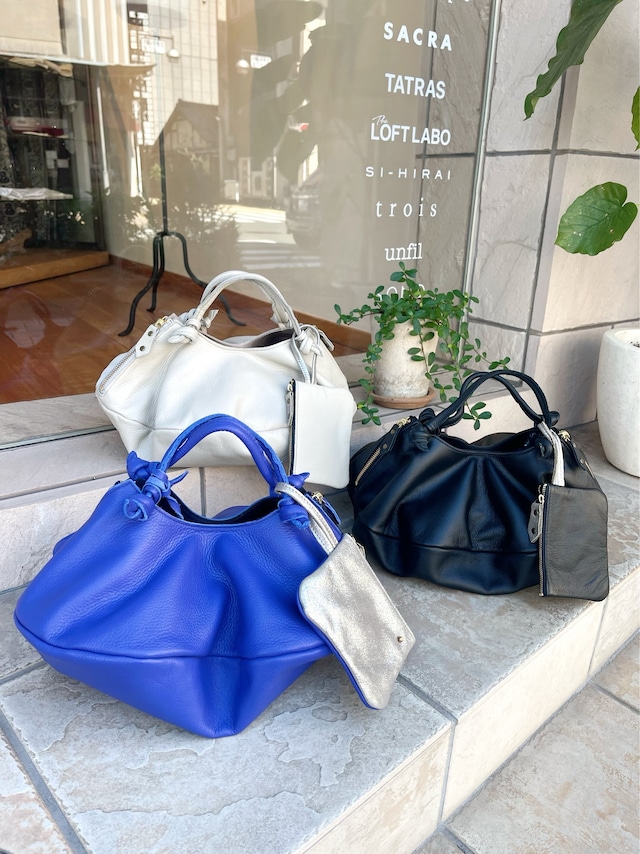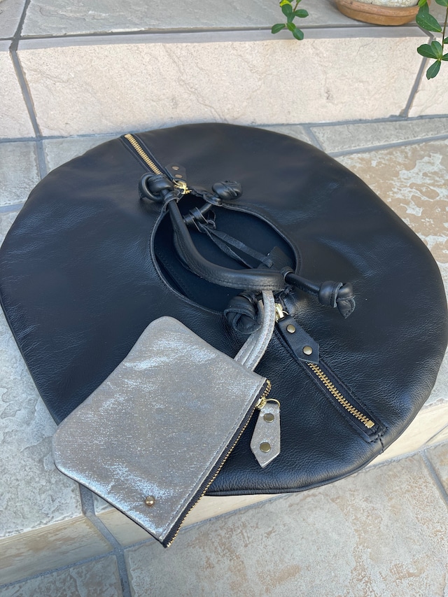 軽く柔らかいレザーを使用した、パラシュートのように膨らむサークル型のバッグです。