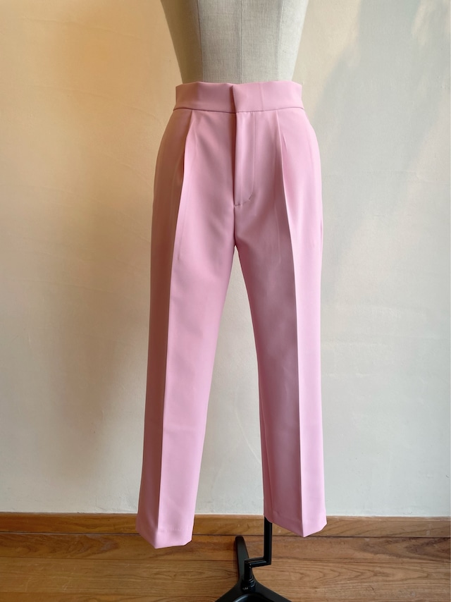 センタープレスを入れたスッキリ見えのきれいめ新型美脚テーパードパンツ。