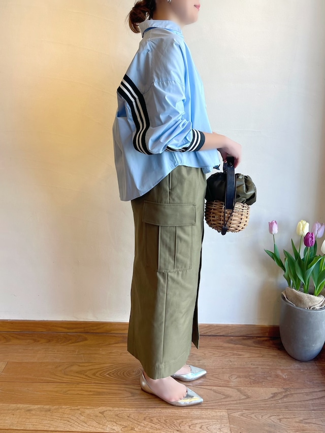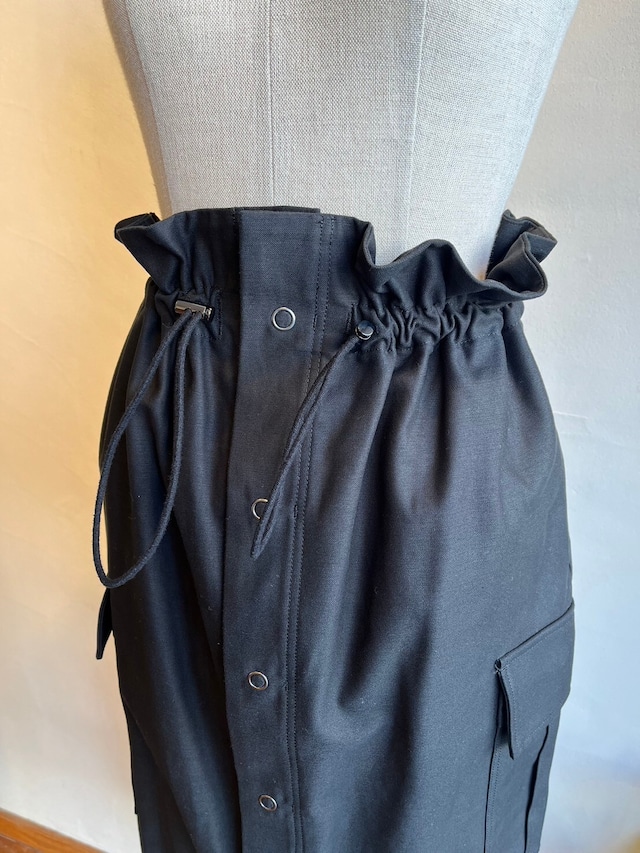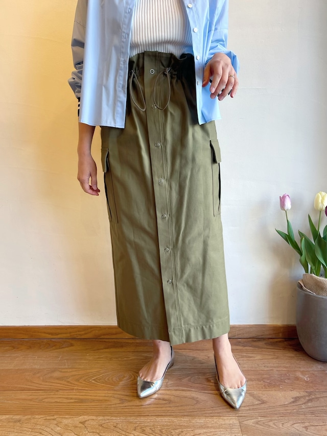 ムラ糸ならではの表情が特徴の高密度コットンバックサテンを使用したカーゴスカート。