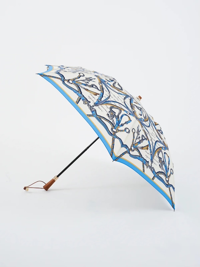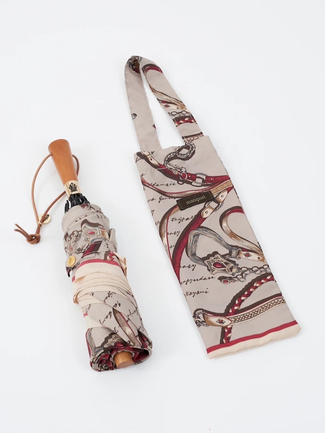 雨の日はもちろん晴れの日も使えるmanipuriの高機能な晴雨兼用傘。スカーフのプリント加工と同様、手捺染でプリントされたポリエステル100%の生地に撥水・防水・UV加工を施している美しくて優秀な逸品です。ハンドルのデザインにはmanipuriのロゴマークが入ったオリジナリティ溢れるこだわりの仕上がり。ひとつひとつ職人によるハンドメイドで作られており、気品のあるおすすめのアイテムです。